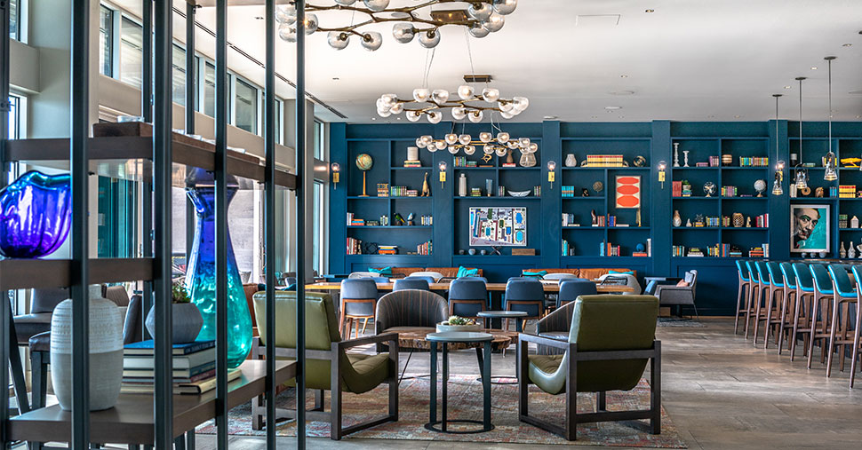 That same hospitality ethos extends all the way to the rooftop. The Upside Lounge, perched above it all, continues the narrative with a relaxed, residential feel and panoramic views of the Dallas skyline.