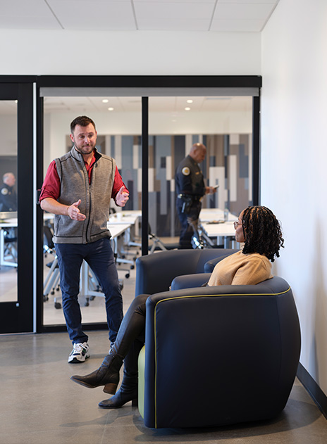 Smith Gee Studio is serving as both architect and interior designer for Nashville’s new Southeast Police Precinct—an innovative, 24,000 sf facility designed to strengthen community ties and prioritize officer wellness. Abandoning the typical windowless, bunker-style precinct model, the design emphasizes natural light, openness, and healthy spaces. Features include a 1,400 sf community room for public meetings, a nearly 700 sf fitness area, and a dedicated wellness space—all aimed at supporting both public engagement and officer wellbeing.